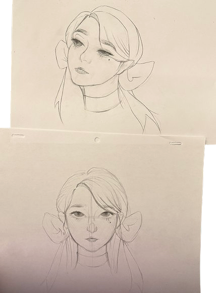 This hand-drawn female character study focuses on head rotation, personality-driven facial expressions, and the secondary motion of her hair accessories.